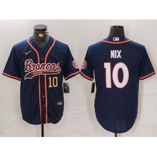 Men's Denver Broncos #10 Bo Nix Number Navy Cool Base Stitched Baseball Jersey