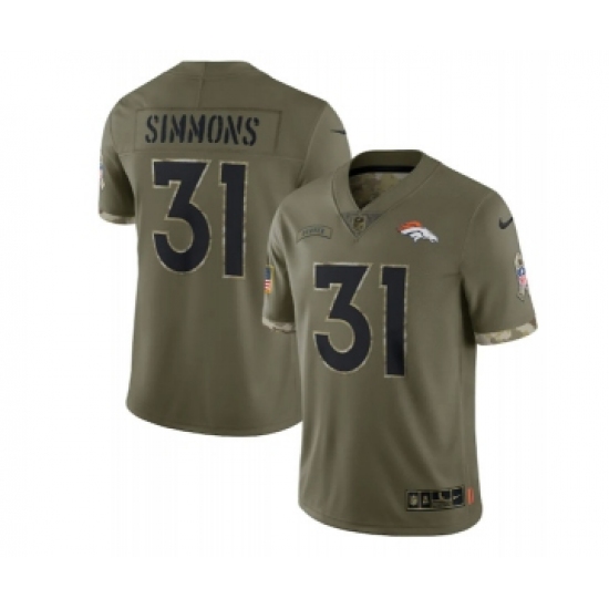>Men's Denver Broncos #31 Justin Simmons 2022 Olive Salute To Service Limited Stitched Jersey