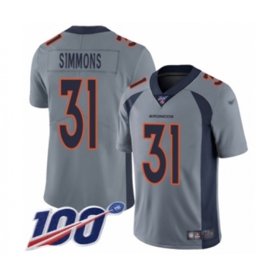Men's Denver Broncos #31 Justin Simmons Limited Silver Inverted Legend 100th Season Football Jersey