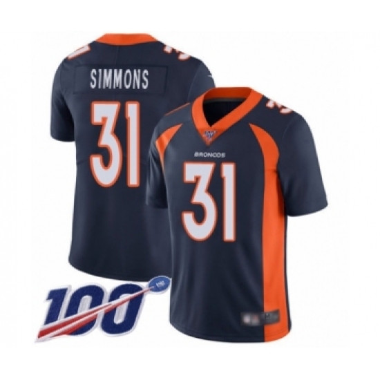 Men's Denver Broncos #31 Justin Simmons Navy Blue Alternate Vapor Untouchable Limited Player 100th Season Football Jersey