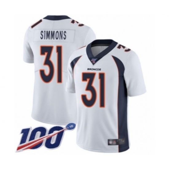 Men's Denver Broncos #31 Justin Simmons White Vapor Untouchable Limited Player 100th Season Football Jersey