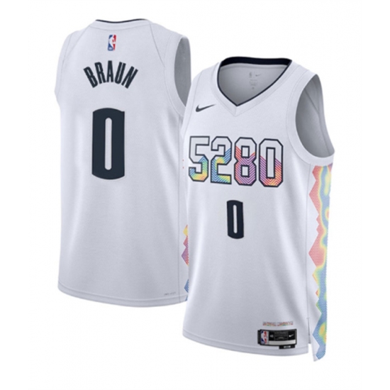 Men's Denver Nuggets #0 Christian Braun White 2024-25 City Edition Stitched Basketball Jersey