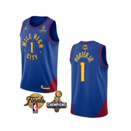 Men's Denver Nuggets #1 Michael Porter Jr. Blue 2023 Finals Champions Statement Edition Stitched Basketball Jersey