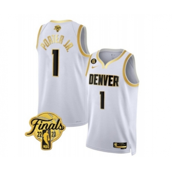 Men's Denver Nuggets #1 Michael Porter Jr. White 2023 Finals Collection With NO.6 Stitched Basketball Jersey