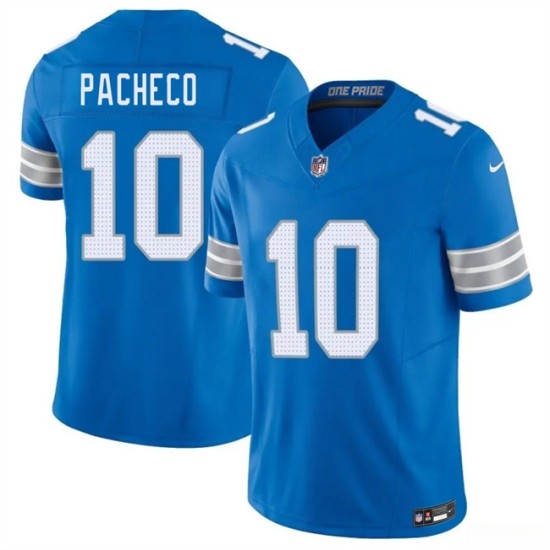 >Men's Detroit Lions #10 Isiah Pacheco Blue 2026 F.U.S.E. Vapor Limited Stitched Jersey