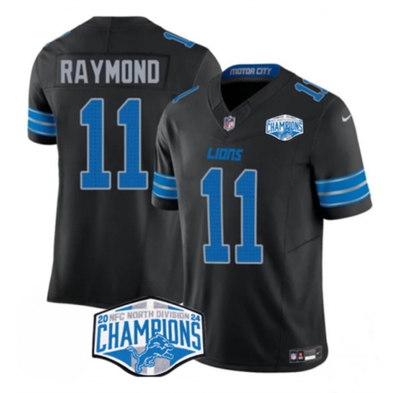 Men's Detroit Lions #11 Kalif Raymond Black 2024 NFC North Champions F.U.S.E. Vapor Limited Stitched Jersey