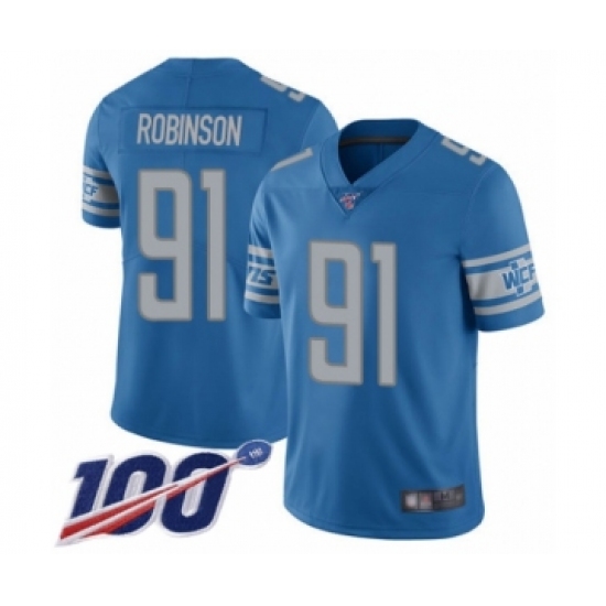 Men's Detroit Lions #91 A'Shawn Robinson Blue Team Color Vapor Untouchable Limited Player 100th Season Football Jersey