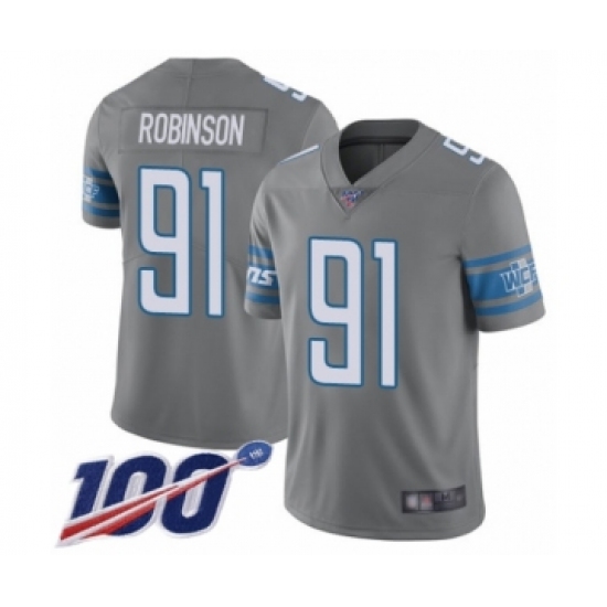 >Men's Detroit Lions #91 A'Shawn Robinson Limited Steel Rush Vapor Untouchable 100th Season Football Jersey