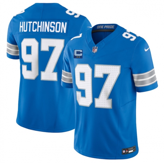 Men's Detroit Lions #97 Aidan Hutchinson Blue 2024 F.U.S.E. Vapor Limited Stitched Jersey