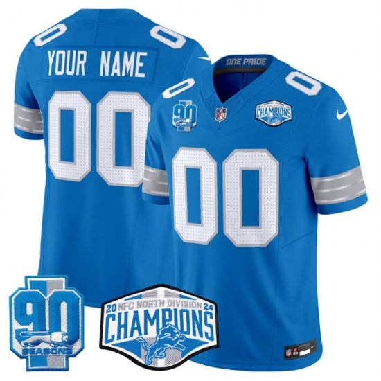 Men's Detroit Lions Active Player Custom Blue 2024 NFC North Champions 90th Anniversary Patch F.U.S.E. Vapor Limited Stitched Jersey