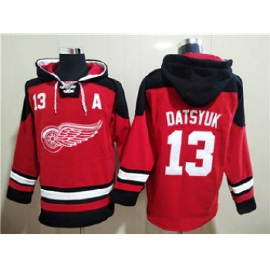Men's Detroit Red Wings #13 Pavel Datsyuk Red Ageless Must-Have Lace-Up Pullover Hockey Hoodie