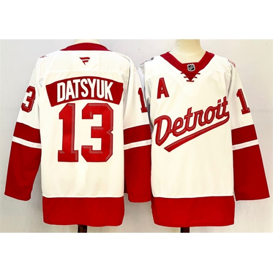 >Men's Detroit Red Wings #13 Pavel Datsyuk White Red 2024-25 With A Stitched Jersey