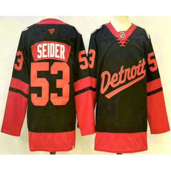 Men's Detroit Red Wings #53 Moritz Seider Black 2025 Stadium Series Stitched Jersey