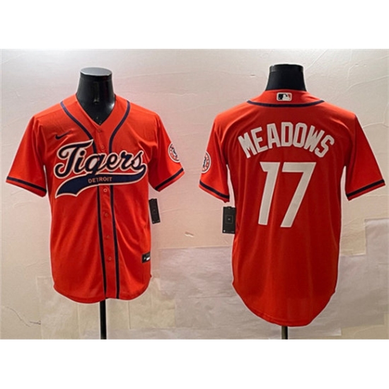 >Men's Detroit Tigers #17 Parker Meadows Orange With Cool Base Stitched Baseball Jersey