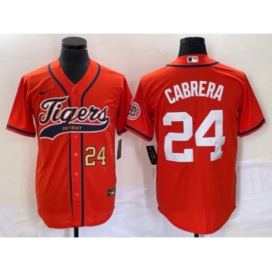 Men's Detroit Tigers #24 Miguel Cabrera Number Orange Cool Base Stitched Baseball Jersey