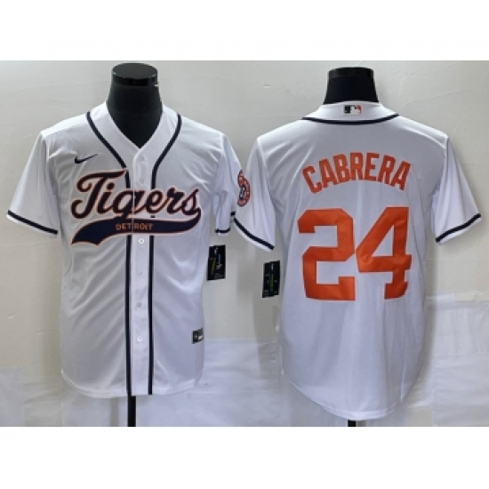 Men's Detroit Tigers #24 Miguel Cabrera White Cool Base Stitched Baseball Jersey