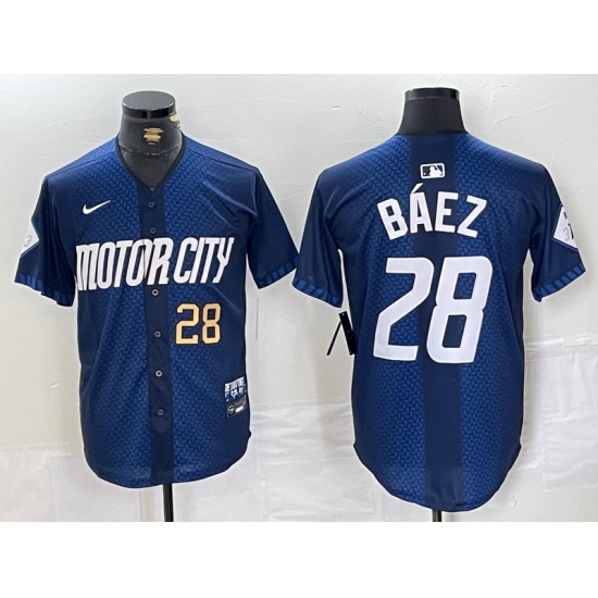 Mens Detroit Tigers #28 Javier Baez Number 2024 Navy City Connect Cool Base Limited Stitched Jersey
