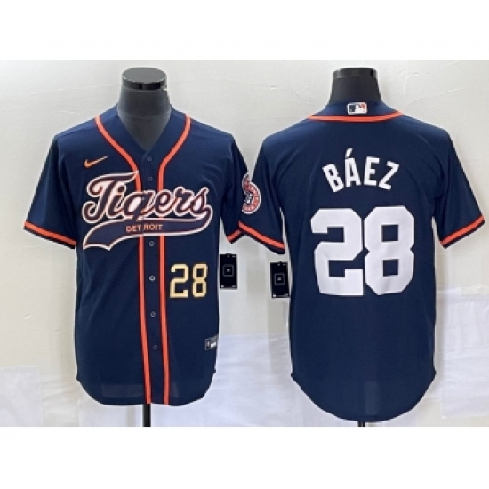 Men's Detroit Tigers #28 Javier Báez Navy Cool Base Stitched Baseball Jersey