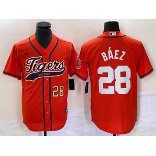 Men's Detroit Tigers #28 Javier Baez Number Orange Cool Base Stitched Baseball Jersey