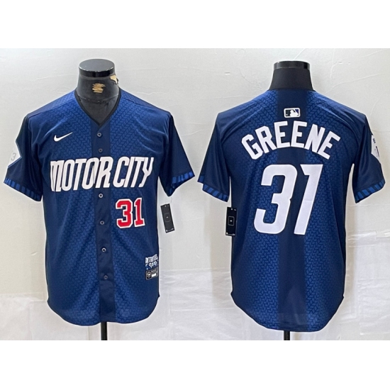>Men's Detroit Tigers #31 Riley Greene Number 2024 Navy City Connect Cool Base Limited Stitched Jersey