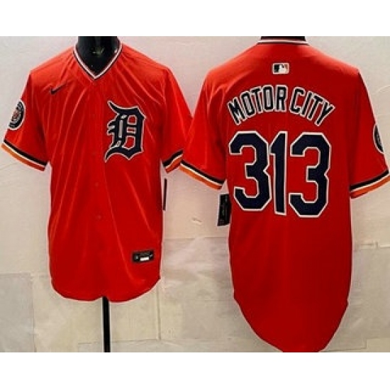 >Men's Detroit Tigers #313 Motor City Orange Limited Jersey