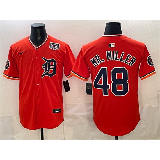 Men's Detroit Tigers #48 Mr. Miller Orange 2026 Alternate USA 250 Vapor Premier Limited Stitched Baseball Jersey