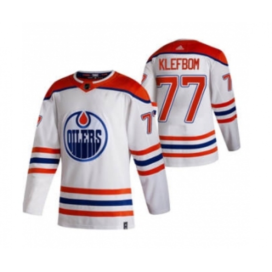 Men's Edmonton Oilers #77 Oscar Klefblom White 2020-21 Reverse Retro Alternate Hockey Jersey