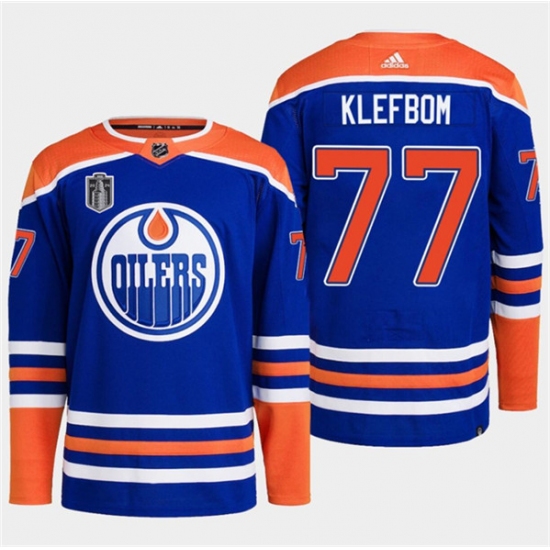>Men's Edmonton Oilers #77 Oscar Klefbom Royal 2024 Stanley Cup Final Stitched Jersey