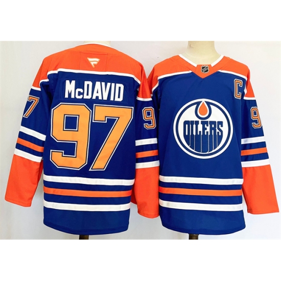 Men's Edmonton Oilers #97 Connor McDavid Royal 2024-25 Stitched Jersey
