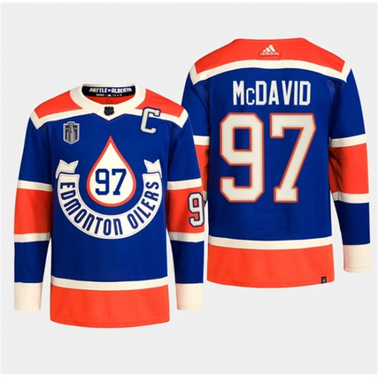 Men's Edmonton Oilers #97 Connor McDavid Royal 2024 Stanley Cup Final Stitched Jersey