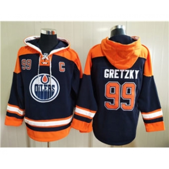 Men's Edmonton Oilers #99 Wayne Gretzky Navy Ageless Must-Have Lace-Up Pullover Hockey Hoodie