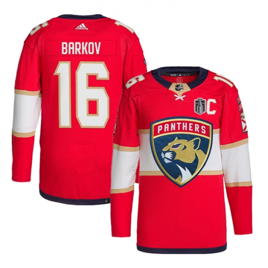Men's Florida Panthers #16 Aleksander Barkov Red 2024 Stanley Cup Final Stitched Jersey