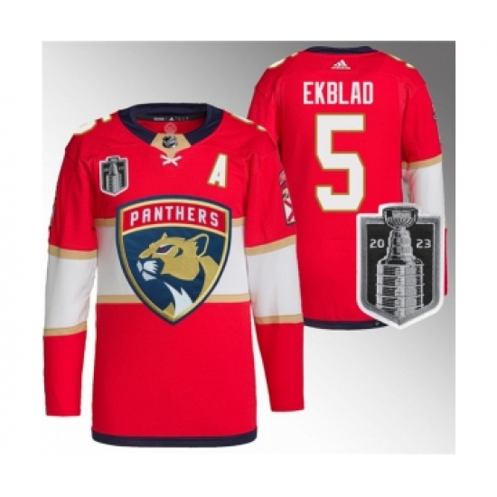 Men's Florida Panthers #5 Aaron Ekblad Red 2023 Stanley Cup Final Stitched Jersey