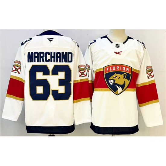 >Men's Florida Panthers #63 Brad Marchand White 2024-25 Home Stitched Hockey Jersey