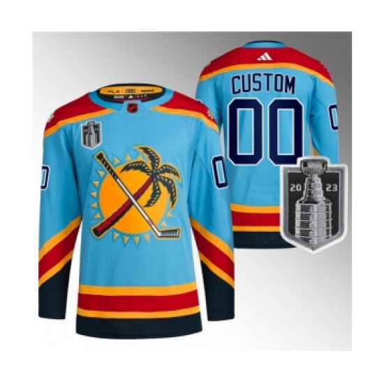 Men's Florida Panthers Custom Blue 2023 Stanley Cup Final Reverse Retro Stitched Jersey