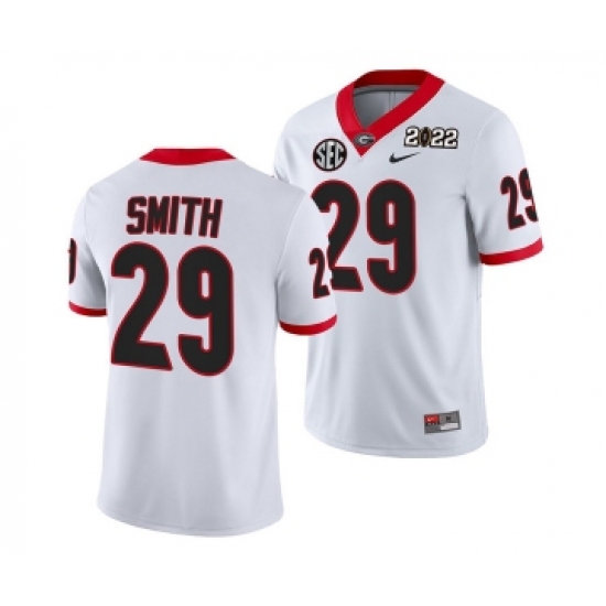 >Men’s Georgia Bulldogs #29 Christopher Smith 2022 Patch White College Football Stitched Jersey
