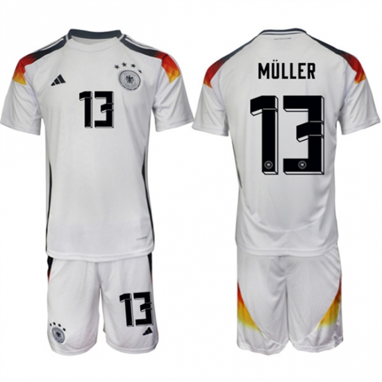 Men's Germany #13 Thomas Müller White 2024-25 Home Soccer Jersey Suit