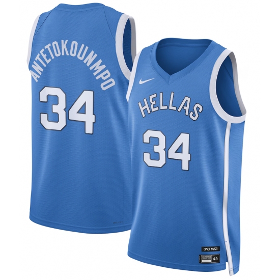 Men's Greece Basketball #34 Giannis Antetokounmpo Blue Nike 2024 Summer Olympics Player Limited Basketball Jersey