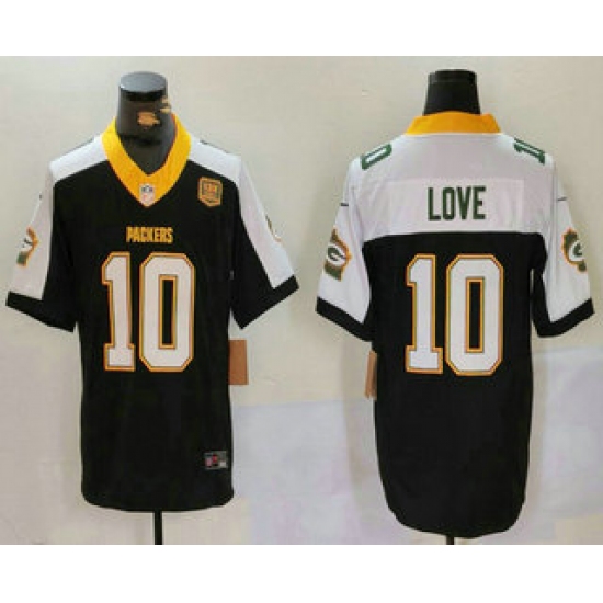 >Men's Green Bay Packers #10 Jordan Love Black 2024 FUSE 13 Time World Champions Vapor Limited Stitched Jersey