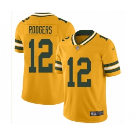 >Men's Green Bay Packers #12 Aaron Rodgers Limited Gold Inverted Legend Football Jersey