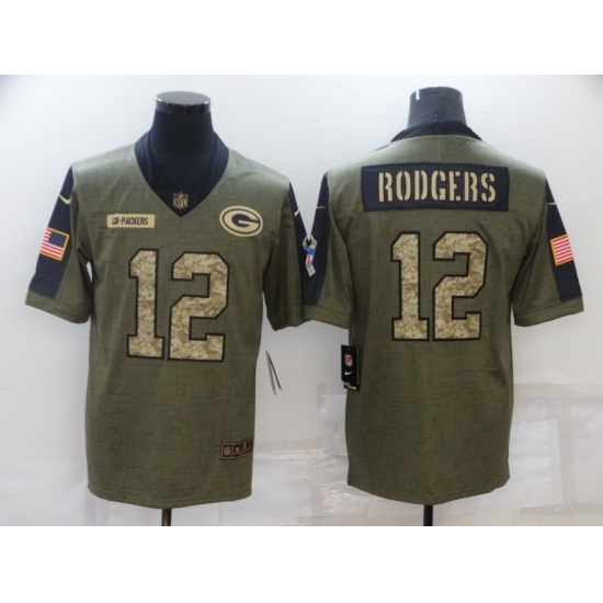 >Men's Green Bay Packers #12 Aaron Rodgers Nike Camo 2021 Salute To Service Limited Player Jersey