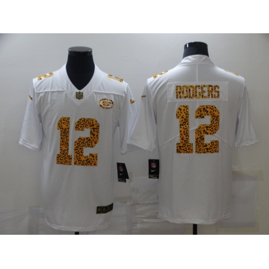 Men's Green Bay Packers #12 Aaron Rodgers White Nike Leopard Print Limited Jersey