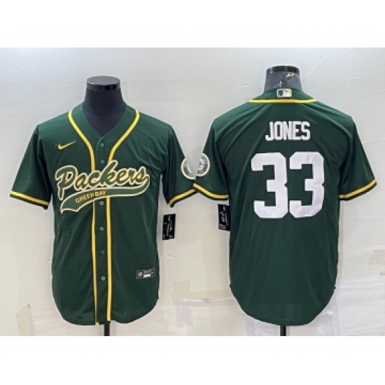 Men's Green Bay Packers #33 Aaron Jones Green With Patch Cool Base Stitched Baseball Jersey
