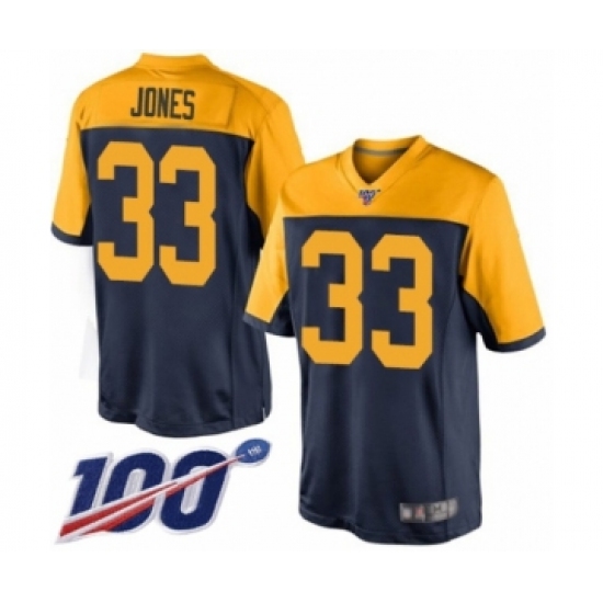 Men's Green Bay Packers #33 Aaron Jones Limited Navy Blue Alternate 100th Season Football Jersey
