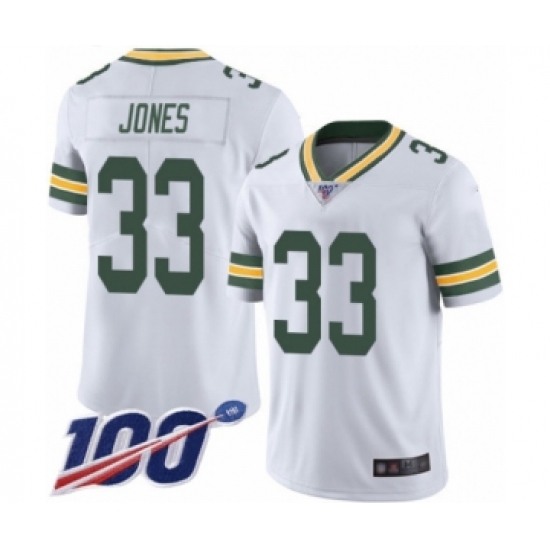 Men's Green Bay Packers #33 Aaron Jones White Vapor Untouchable Limited Player 100th Season Football Jersey