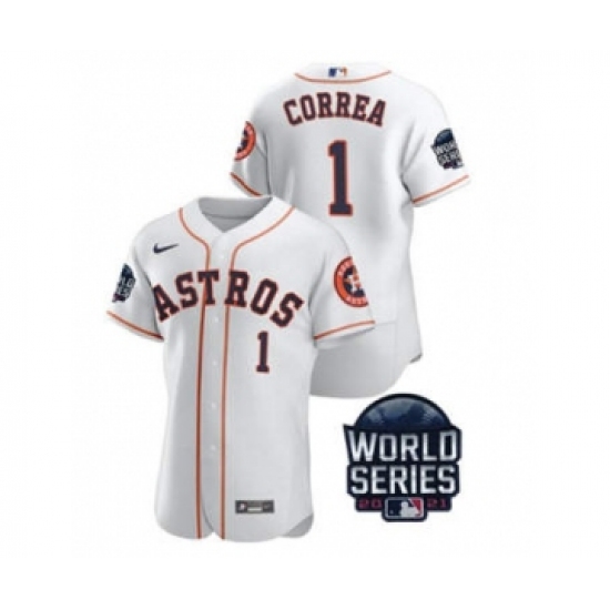 Men's Houston Astros #27 Jose Altuve 2021 White World Series Flex Base Stitched Baseball Jersey
