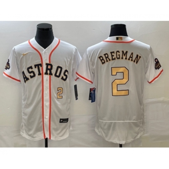 Men's Houston Astros #2 Alex Bregman Number 2023 White Gold World Serise Champions Flex Base Stitched Jersey