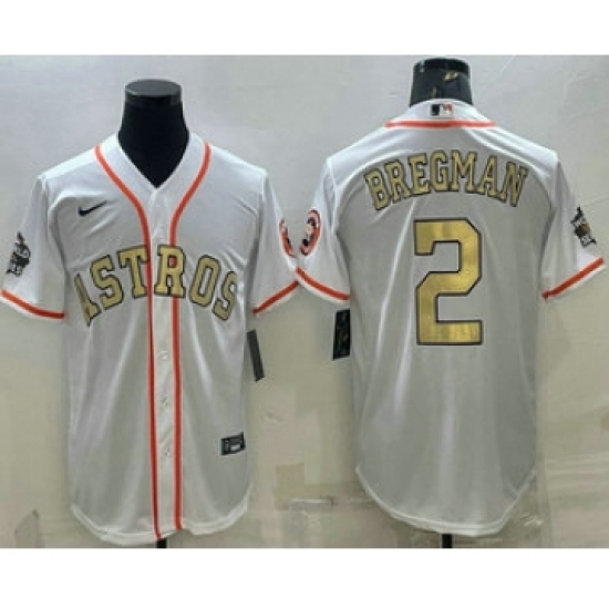 Men's Houston Astros #2 Alex Bregman White Gold 2022 World Series Champions Stitched Cool Base Nike Jersey