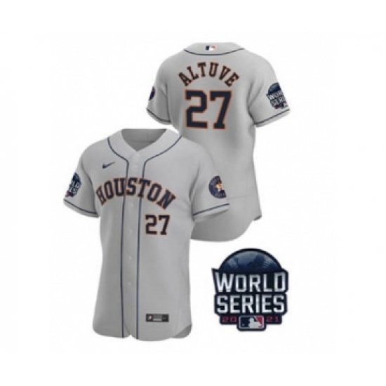 Men's Houston Astros #27 Jose Altuve 2021 Gray World Series Flex Base Stitched Baseball Jersey