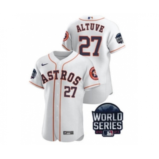 Men's Houston Astros #27 Jose Altuve 2021 White World Series Flex Base Stitched Baseball Jersey